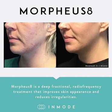Radiofrequency (RF) energy is a proven method to rebuild collagen. Using micropins, this minimally invasive procedure will renew the deeper layers of the skin. Morpheus 8 can be used on face and neck and to decrease undereye bags, sagging neck and tighten jowls and can also treat fine lines, skin texture, acne scarring and pigmentation.